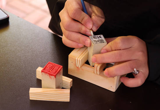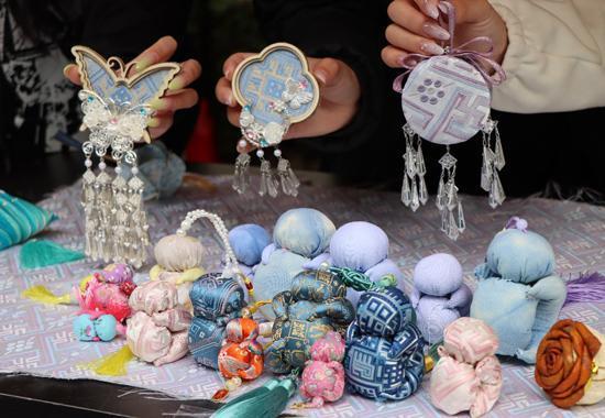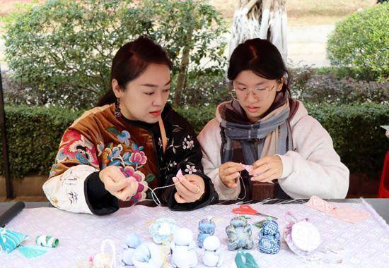 学生现场展示石头刻字。桂林理工大学供图近日,桂林理工大学南宁分校经济与管理学院举办“非遗传承·文旅创新”实训成果展,旅游管理专业学生创作的壮族麽乜、绣球、扎染团扇、竹编挂件等百余件作品集中亮相,通过静态展陈与民俗讲解等动态互动,打造沉浸式非遗体验空间,进一步展现该校“非遗融入课堂、实训赋能成长”的育人成效。