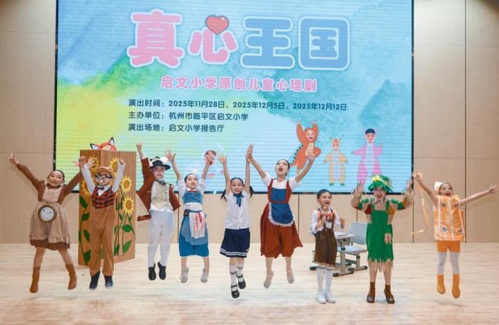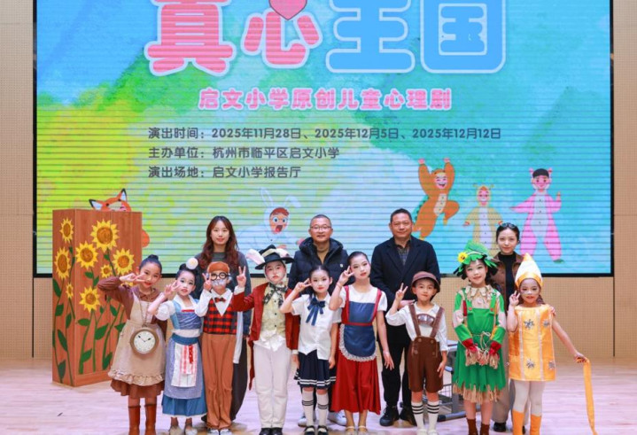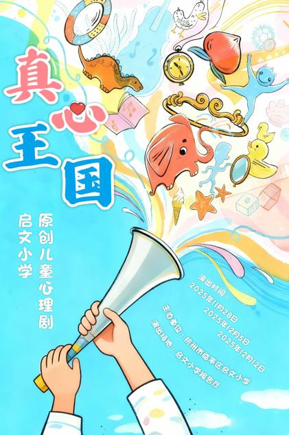 近日,杭州市启文小学原创儿童心理剧《真心王国》为期三周的展演圆满落幕。这场别开生面的心理健康主题活动,以戏剧为媒,以艺术为桥,在校园里掀起了一股“勇敢表达、真诚沟通”的情感浪潮。