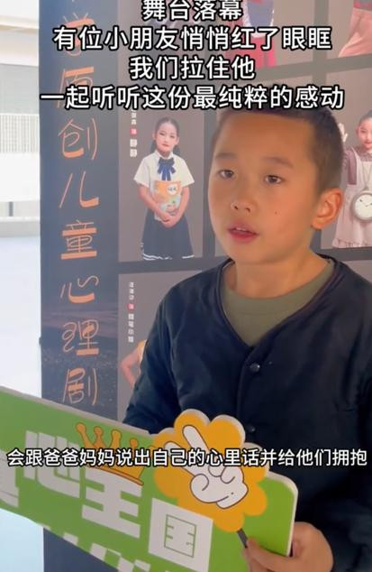 特别令人动容的是,三年级一位同学在观剧过程中热泪盈眶。在随后的采访中,他哽咽着说:“剧里的小主角和我好像,我也有好多话想对爸爸妈妈说,但总是不敢......看完这部剧,我觉得我可以试试了。”